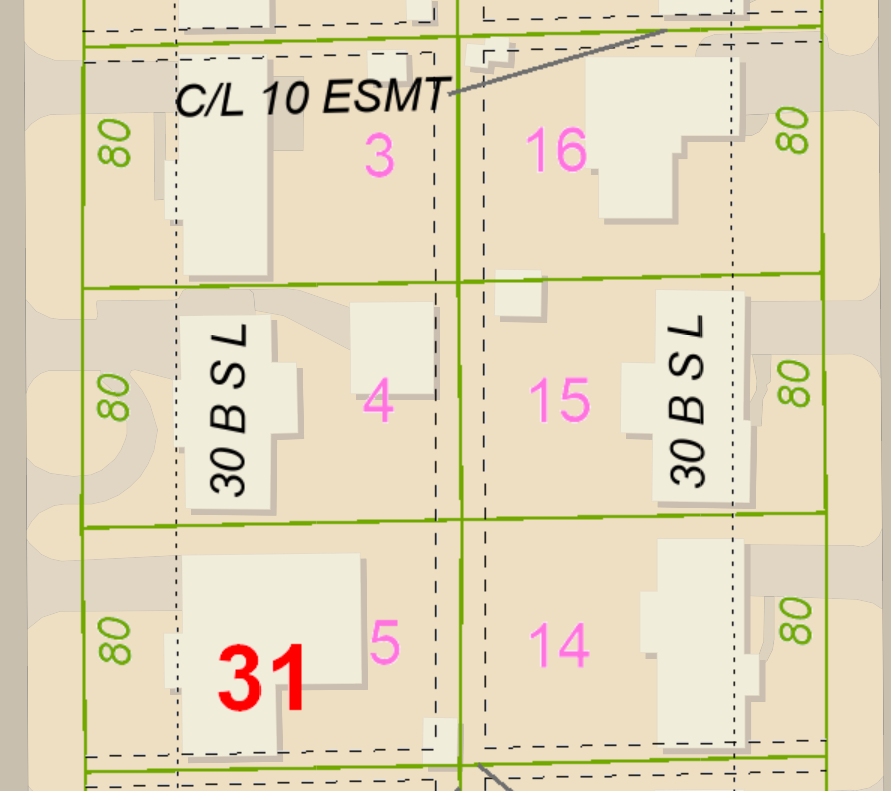 In Sedgwick County, your pool must meet specific setback requirements, including being 5 feet away from side property lines and 10 feet from rear property lines. Easements, which allow utilities access to your land, must also be considered, as building a pool over an easement can cause legal issues. This is a sample image of what these lines look like on the GIS software provided by the city.